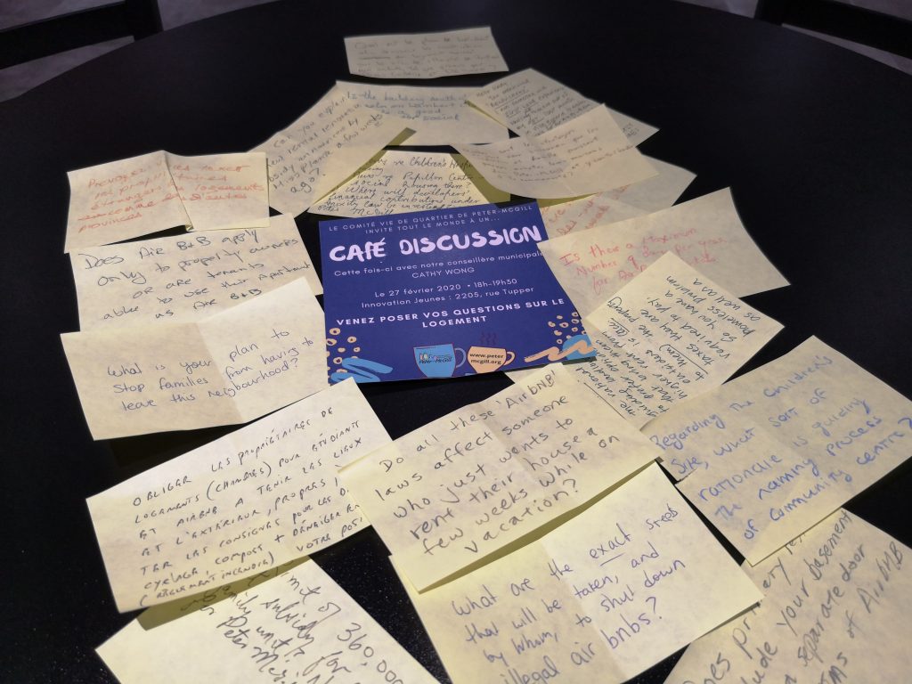 Les conditions météorologiques exécrables du 27 janvier 2020 n’ont pas empêché une trentaine de citoyens et citoyennes du district Peter-McGill de participer à un café-discussion sur le logement. Les invités étaient Cathy Wong, conseillère de la ville pour le district Peter-McGill de l’arrondissement Ville-Marie, et Richard Ryan, conseiller spécialiste des logements.
