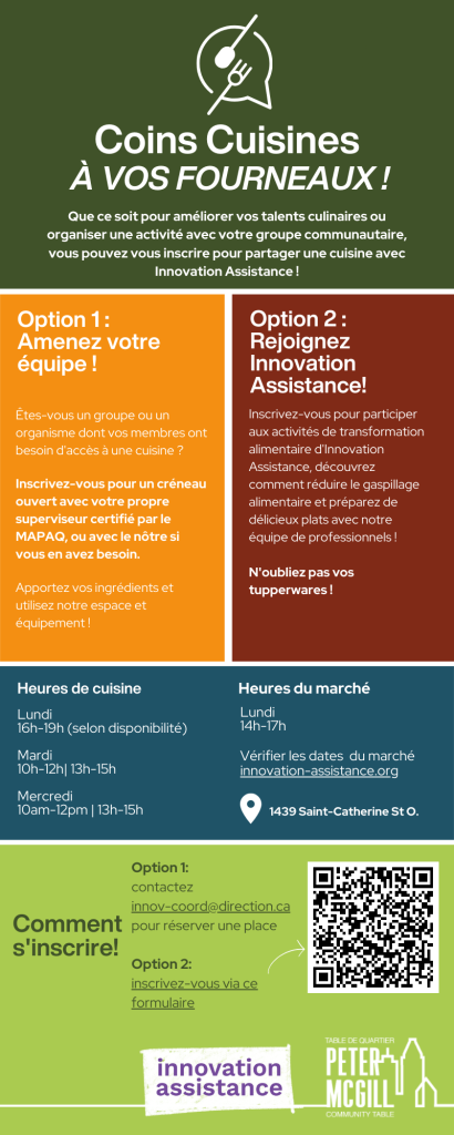 Innovation-Assistance se consacre à la sécurité alimentaire au centre-ville de Montréal, et nous vous invitons à devenir partenaires avec nous ! Nous travaillons avec des fermiers et des fournisseurs locaux pour présenter des aliments frais et abordables aux résidents à faible revenu du quartier Peter-McGill. À Noël, soyez solidaires avec…