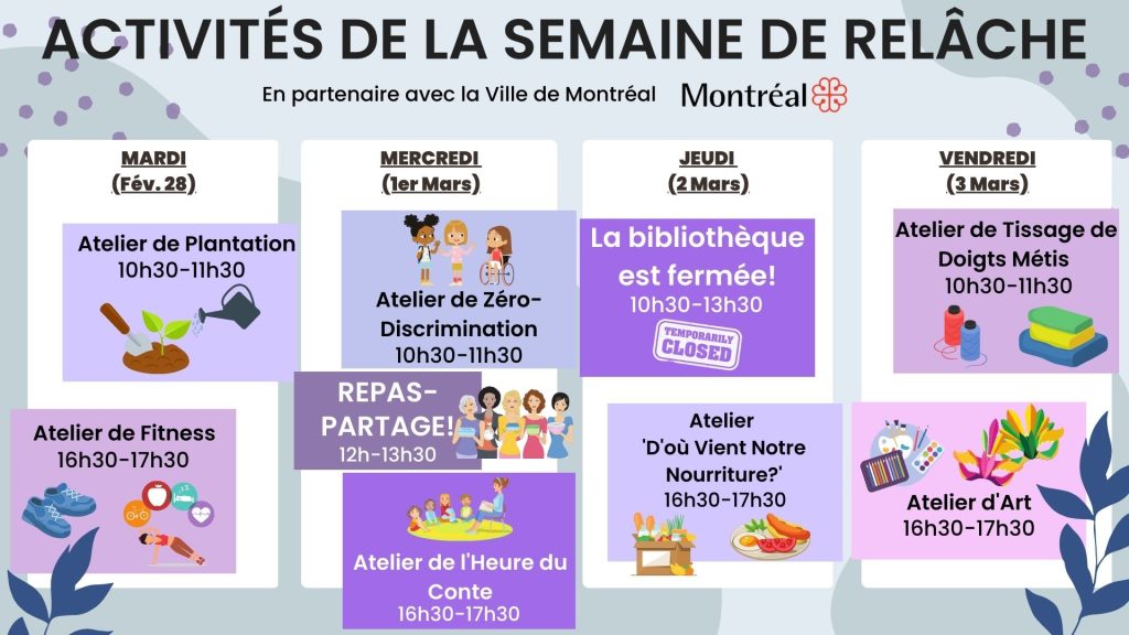 Le programme Plein air interculturel, qui est co-présenté par l'Association récréative milton-Parc et la Maison de l'Amitié, est ravi d'annoncer l'ouverture des inscriptions à nos activités hivernales. Nous proposons des cours et sorties de ski de fond, raquettes et patin interculturel à Montréal dès le 9 janvier. La plupart sont…