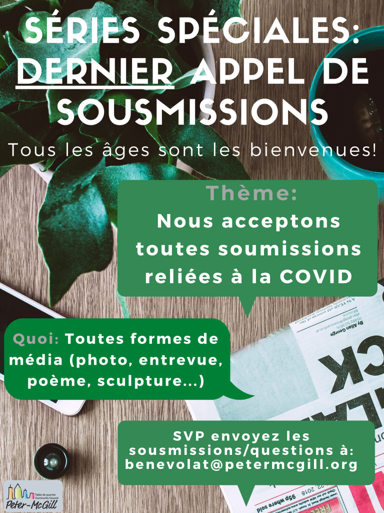 Ce poème a été soumis dans le cadre du projet Journalisme Citoyen de la Table de quartier Peter-McGill. Veuillez noter que les opinions exprimées dans ces articles ne reflètent pas nécessairement celles de la Table. Le projet vise à faire entendre les voix des résident.e.s et ami.e.s du quartier par des soumissions d’articles,…