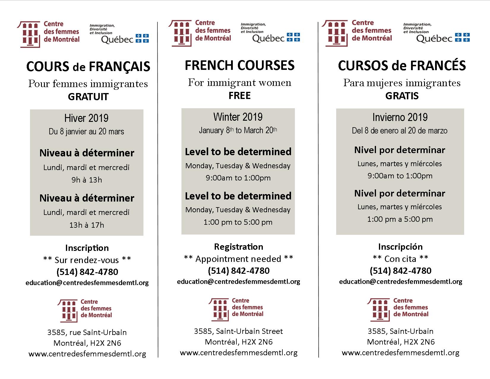 Infos : nom, téléphone, site internet : Julie Boyer, 514 842-4780, education@centredesfemmesdemtl.org