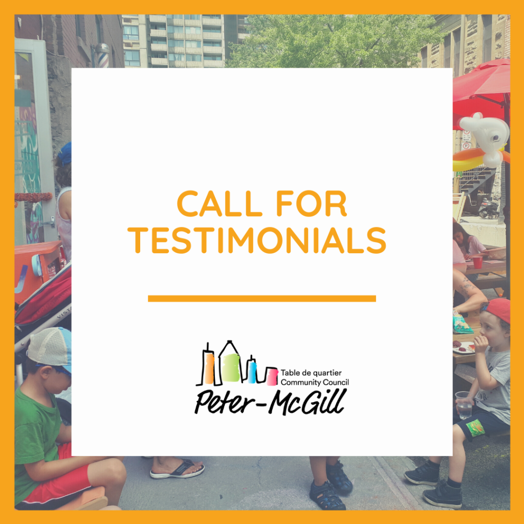 We are currently looking for testimonials from Peter-McGill residents who are involved in neighbourhood life.