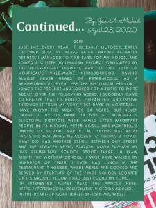 This article was submitted to the Citizen Journal project of the Peter-McGill Community Council. This project aims to create space for the voices of residents, students and friends of the neighbourhood through articles, photos, videos and podcasts (as well as other mediums). Are you interested in contributing? Contact us at benevolat@petermcgill.org!