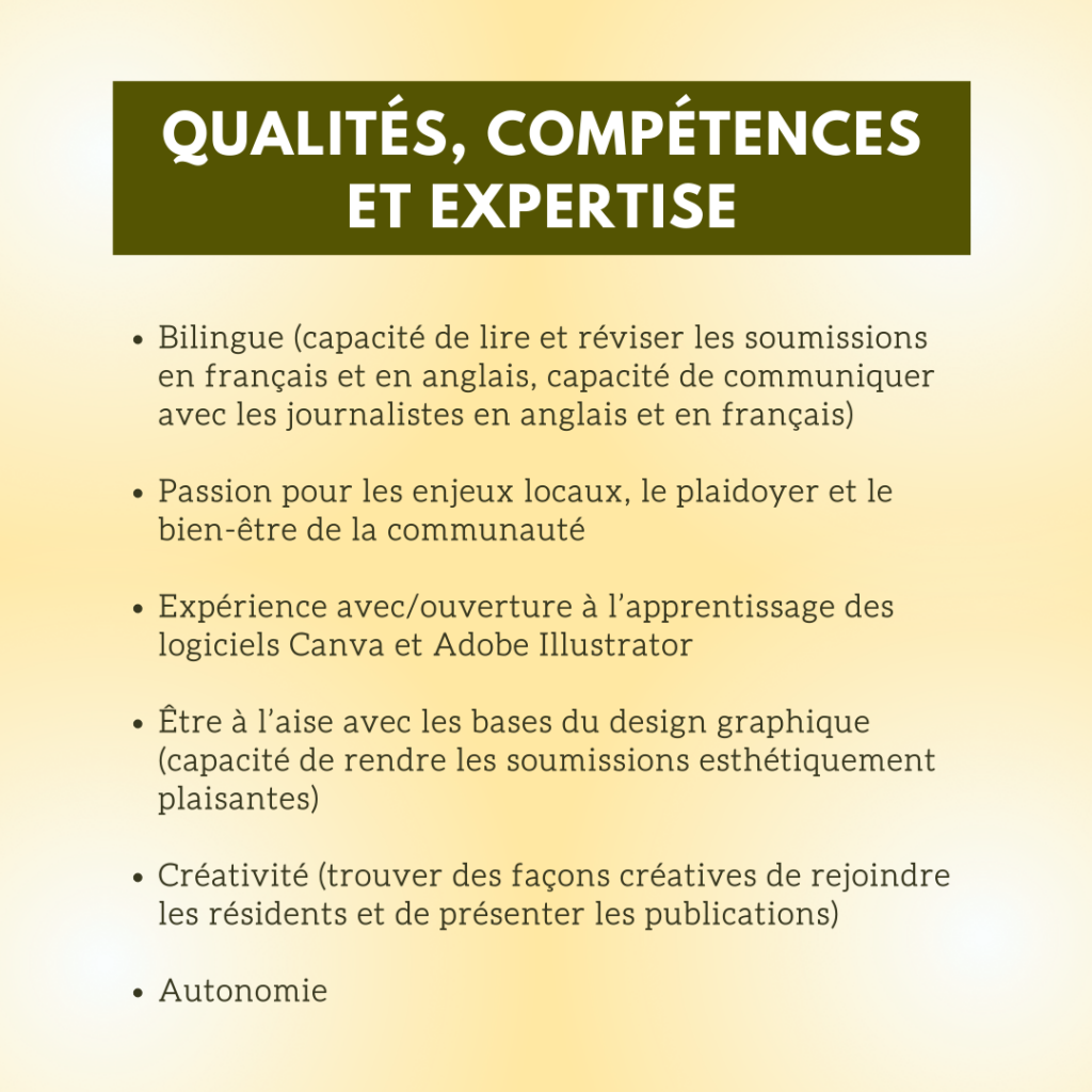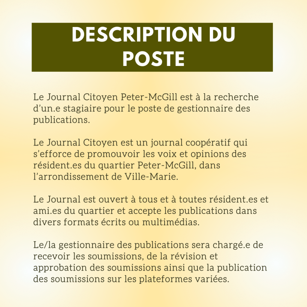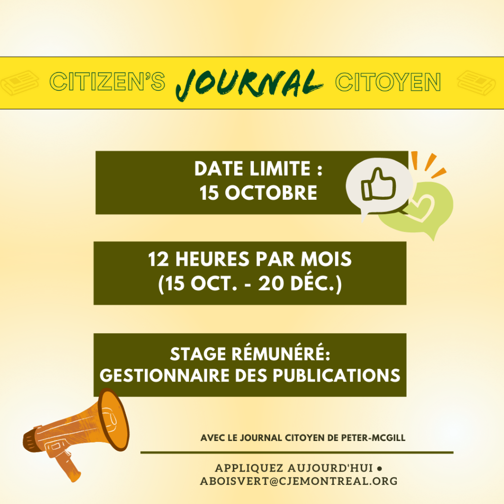 Le Journal Citoyen recrute ! septembre 28, 2022 Navigation de l’articleOFFRE D’EMPLOI AGENT-E DE LIAISONChez Doris annonce l’ouverture du refuge de nuit Elspeth McConnell