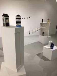 La visite commence en se dirigeant vers la droite de l’espace d’exposition, où l’on découvre des photos Polaroid de petit format, représentant des berlingots ou plus communément des ‘pintes de lait’ que les photographes ont placés à différents endroits, lors de leurs randonnées exploratrices de leur quartier.