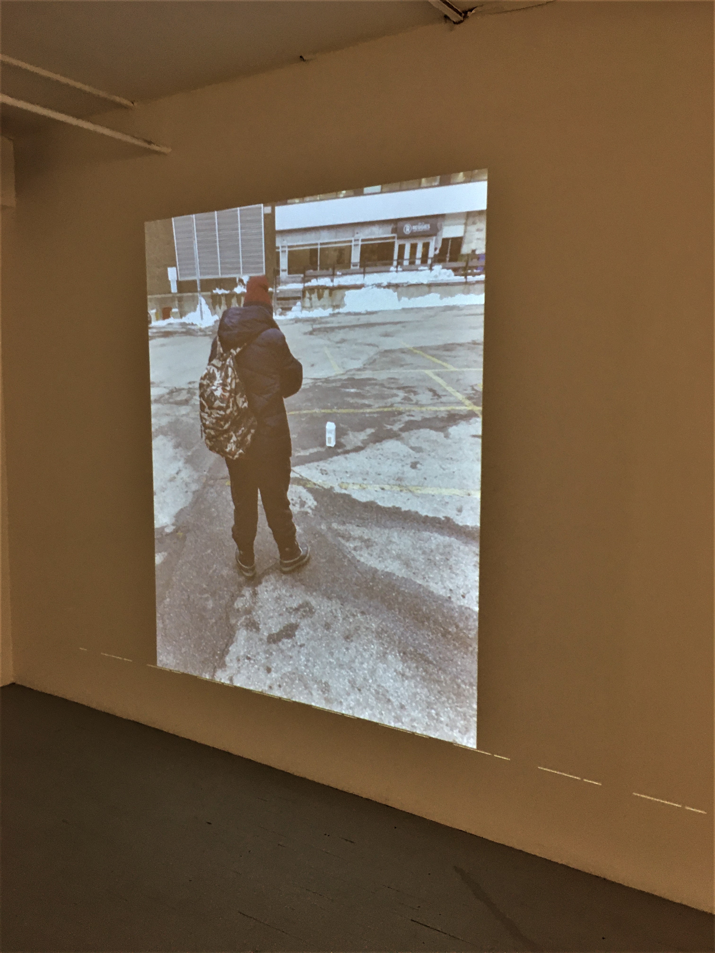 Face à l’entrée de l’exposition, un écran improvisé sur la surface blanche du mur, reflétait les images, en couleur, affichées par un projecteur chronométré. Ce court diaporama nous faisait revivre les précieux moments que le groupe partageait lors de leurs ateliers de création au MBAM (Musée des beaux-arts de Montréal).