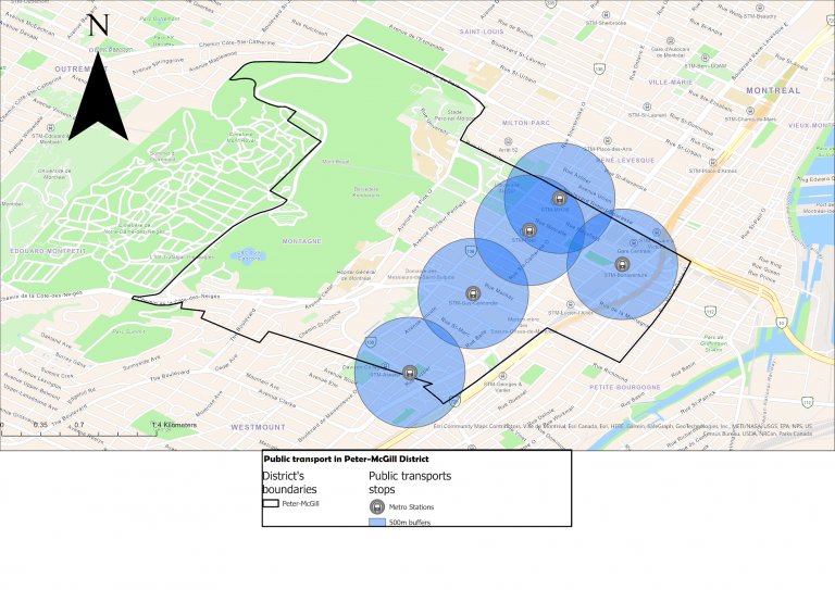 Par conséquent, la situation du transport dans Peter-McGill révèle une macro-conception redondante pour tous les types de transport: les solutions de rechange à la voiture dans le district ont pour but de permettre un passage fluide dans le district, surtout pour les travailleurs quotidiens.